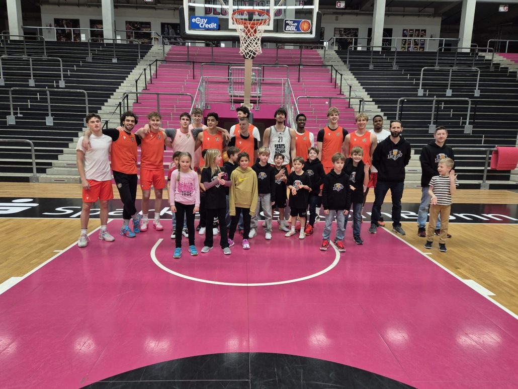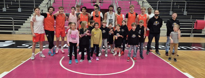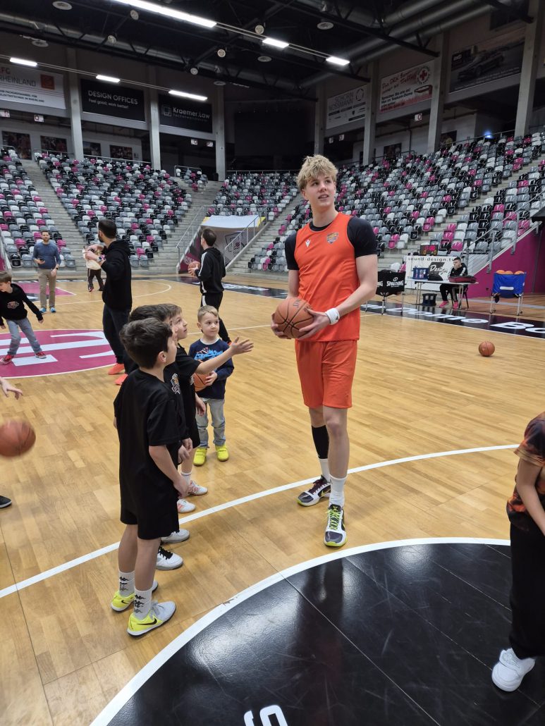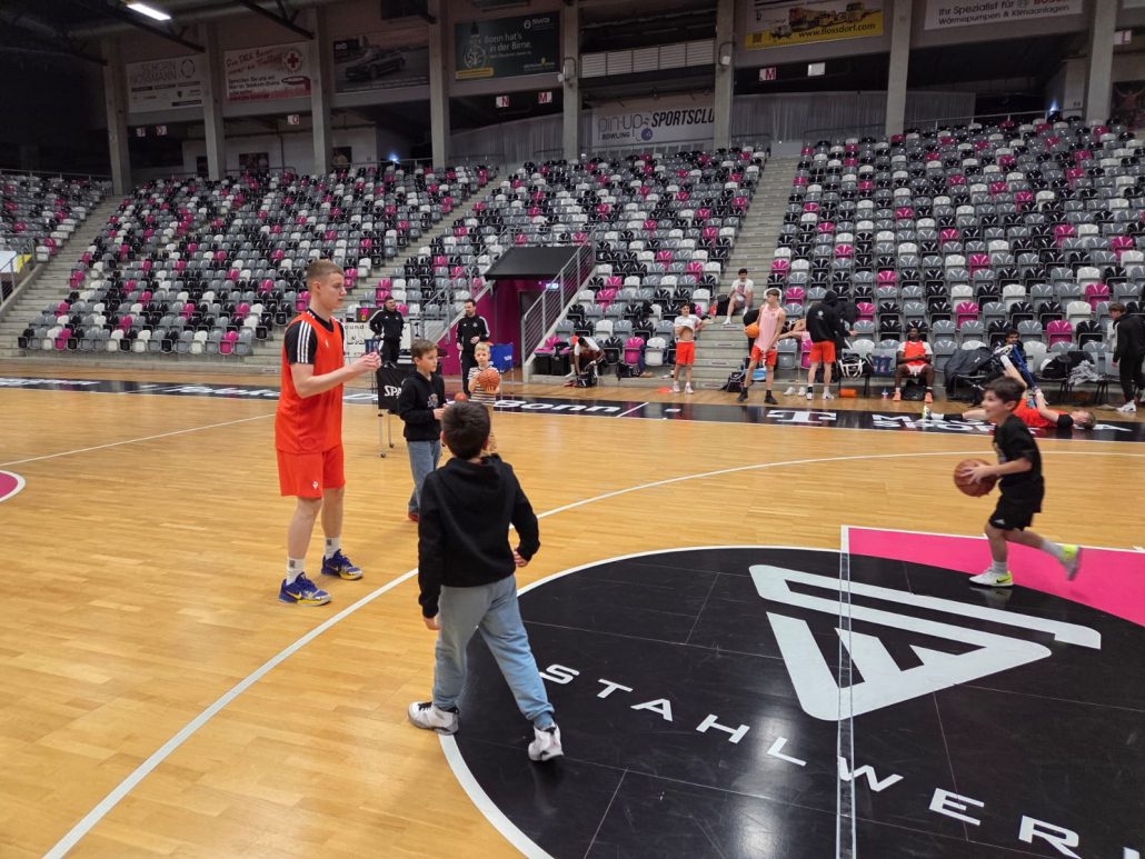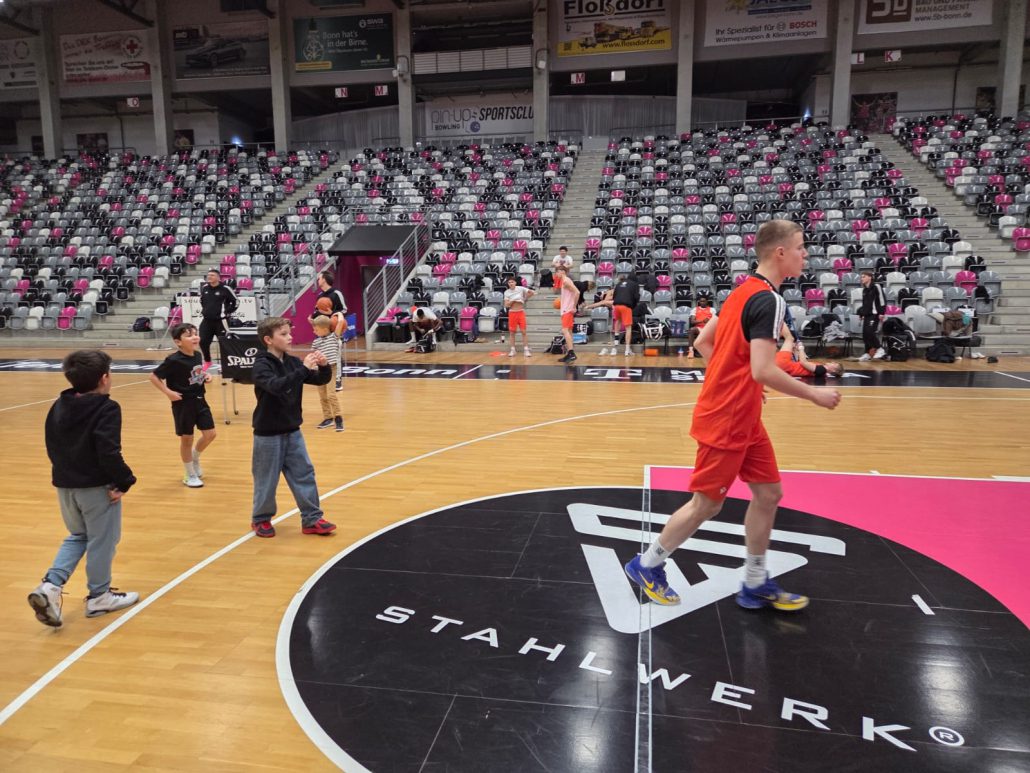 Das absolute Highlight folgte im Telekom Dome selbst: Auf dem Court der Profis zogen die Kinder ihre Basketballschuhe an und durften sich gemeinsam mit drei NBBL-Spielern messen. Im Anschluss verfolgten sie das Training der NBBL-Spieler und erlebten hautnah das Tempo und die Intensität auf höchstem Nachwuchsniveau.