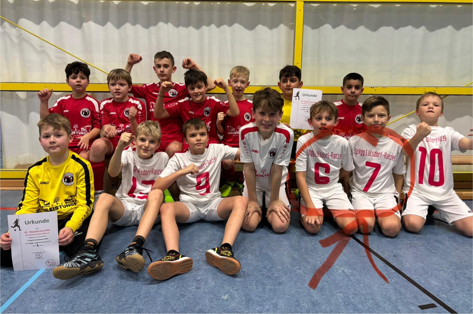 Für unsere U06 war der 5. Kriegsdorfer Hallencup ein ganz besonderer Meilenstein: die erste Turnierteilnahme überhaupt. Zudem liefen die Kinder erstmals in den weiß-roten Trikots der SpVgg Lülsdorf-Ranzel auf – ein Moment, der allen Beteiligten lange in Erinnerung bleiben wird.