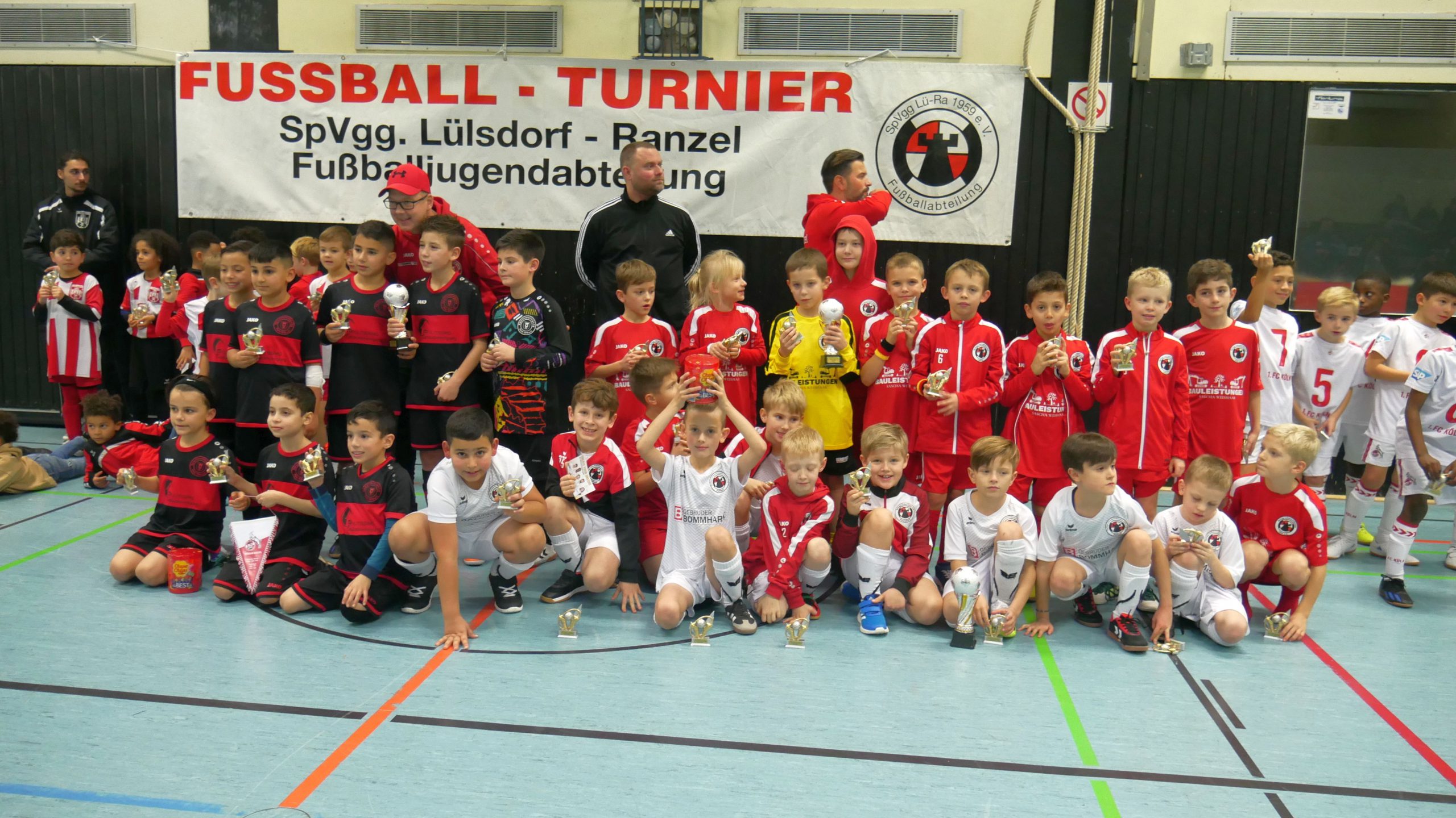 Gegen Mittag ging es los. Zahlreiche Zuschauer sorgten für eine angemessene Kulisse, sodass hochmotivierte F-Junioren aus Köln, Hennef, Altenrath, Porz, Niederkassel, Rheidt und zwei Mannschaften der LüRa sich packende Spiele um den ersten Platz beim AeroMates Youth Cup in der Dreifachsporthalle des Schulzentrums Nord lieferten.